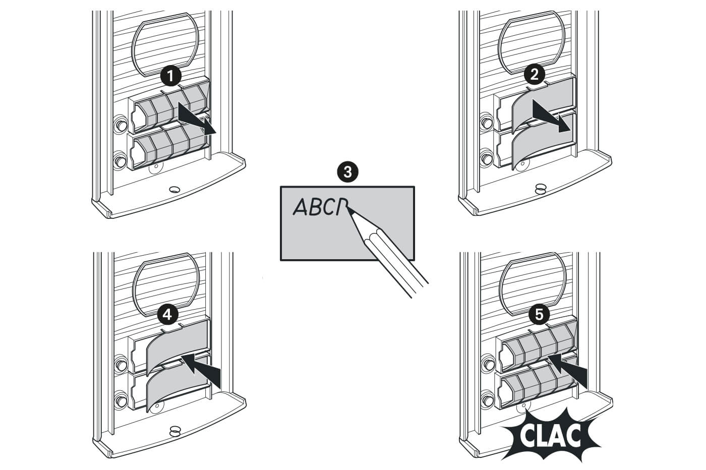 It is recommended that the entrance panels are installed at a height of 160 – 165 cm (high level) from the floor. To allow the use of the entrance panels by disabled individuals, the recommended installation height is 120 - 125 cm (high level) – also refer to local the regulations in force.