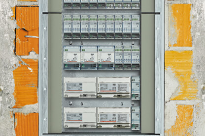 As devices generate heat, it is advisable to place those that generate more heat (power supplies, dimmers) at the bottom and those that generate less at the top.