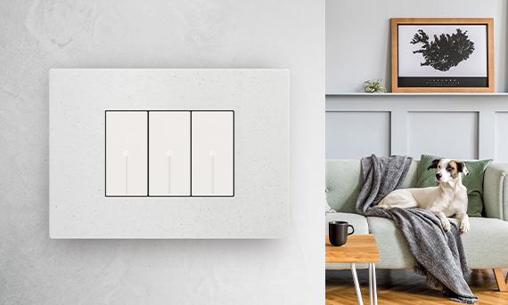 A minimal and pure design where every detail becomes the protagonist. Perfect alignment between cover plates and axial controls. Slightly rounded edges.
